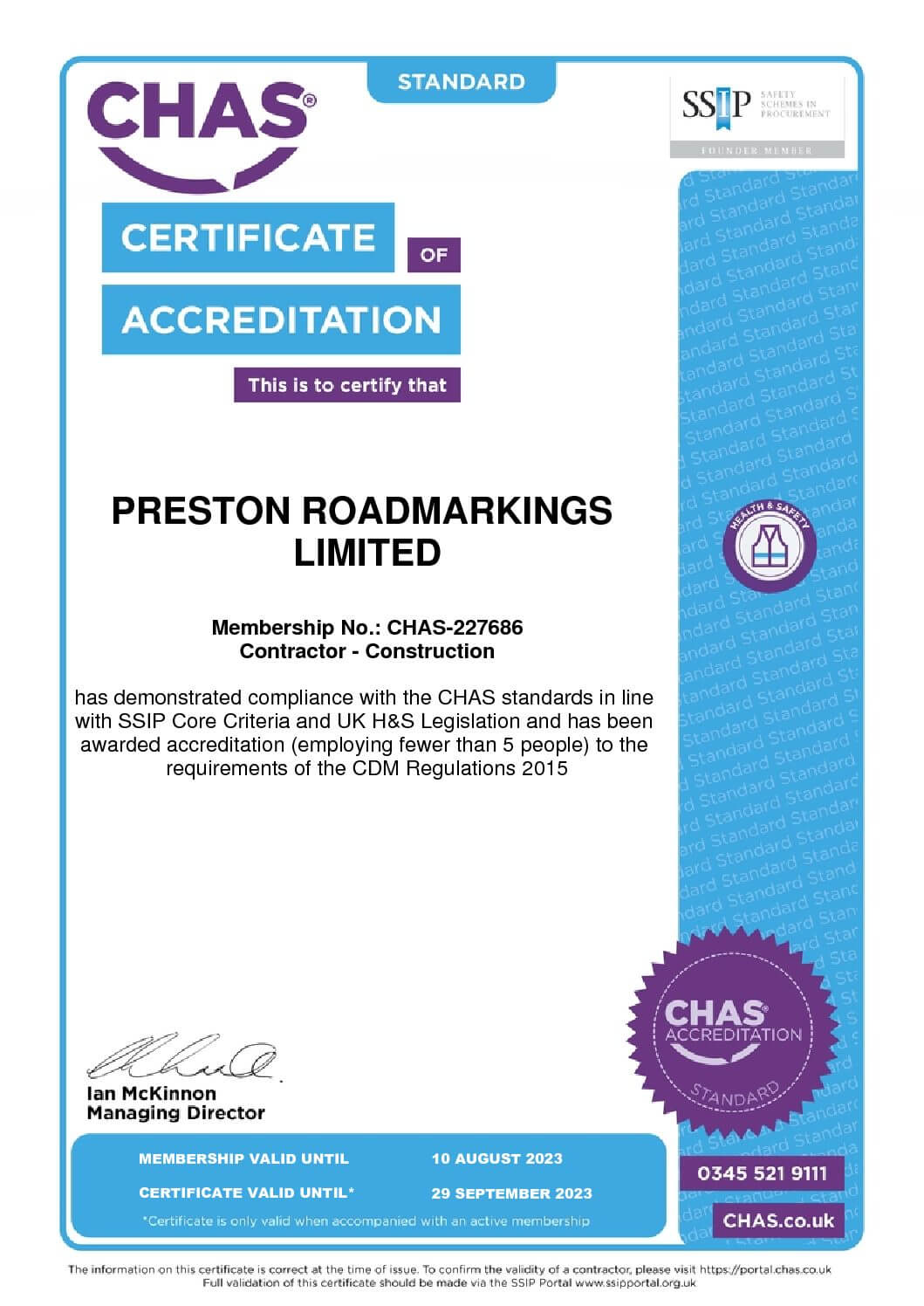 Preston Roadmarkings are proud to hold the following industry certifications...