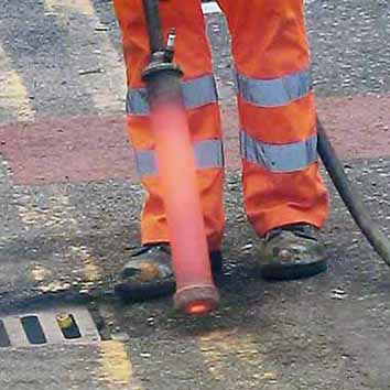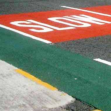 Coloured surfacing can designate areas of the highways for different users, or highlight highway notices.