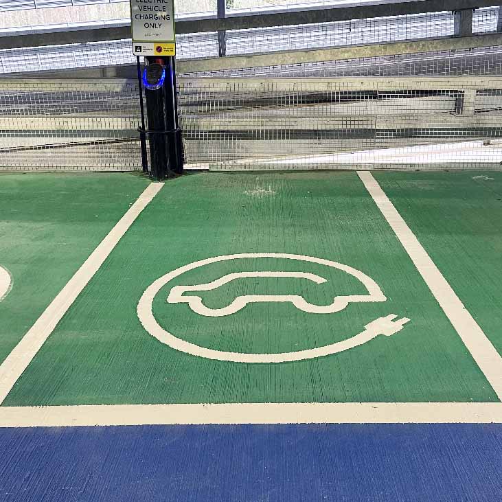 Coloured surface coating to easily distinguish electric charge parking spots from others.